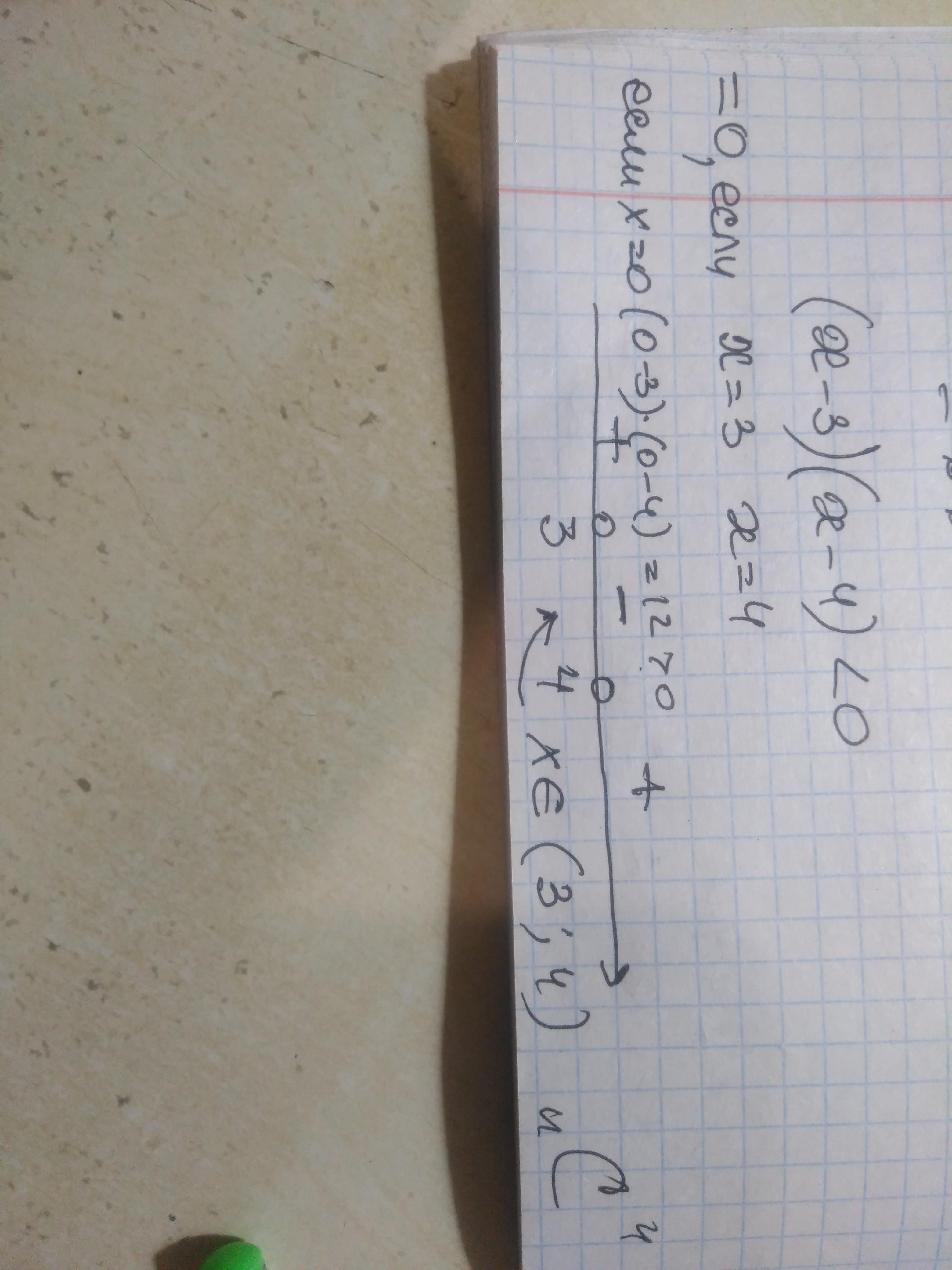 Решите неравенство: ( х − 3) (х – 4) < 0