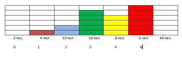 Вместо горизонтальных полос использовать клетку тетради. 3 человека - 0 клеток (ни одной задачи), 4 человека 1 задача и т.д.