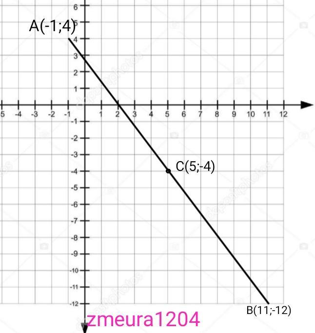 Найдите координаты точки С, которая делит отрезок АВ пополам, если А(-1;4), В(11;-12)
