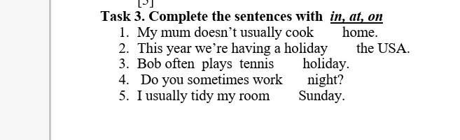 Task 3. Complete the sentences with in, at, on