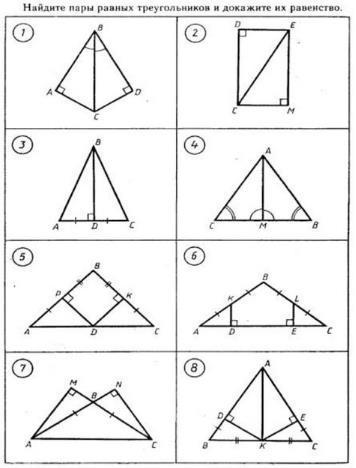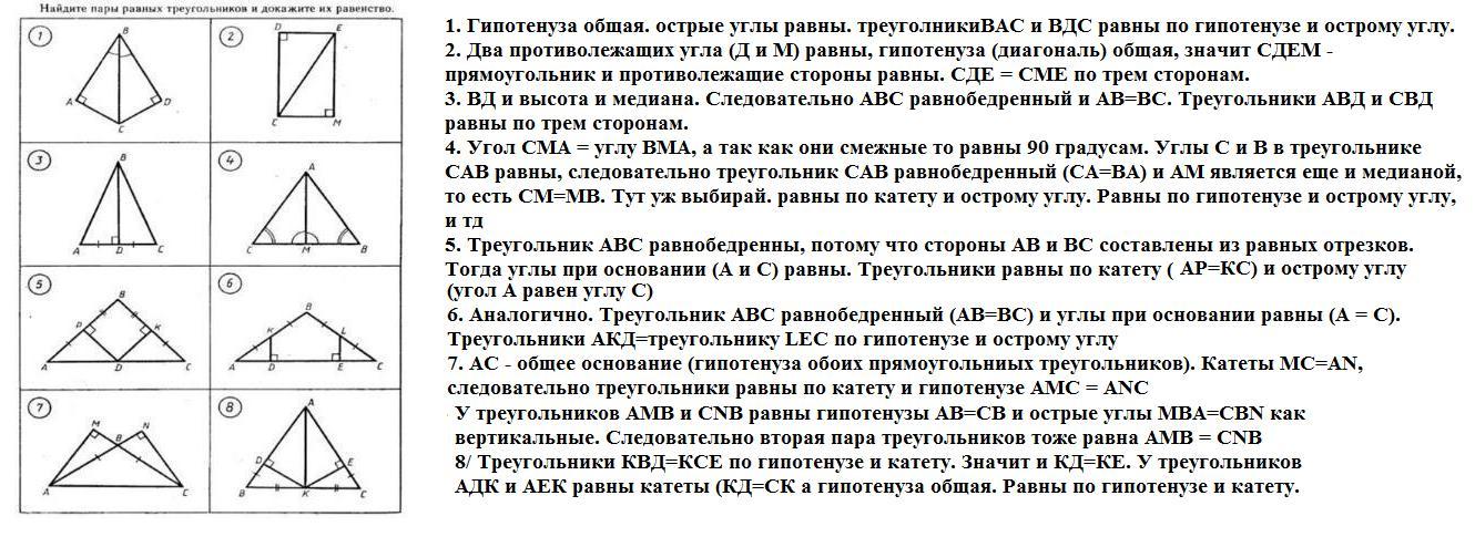 НАЙДИТЕ ПАРЫ РАЗНЫХ ТРЕУГОЛЬНИКОВ И ДОКАЖИТЕ ИХ РАВЕНСТВО