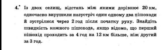 За 4 год перший проходить 4х км; другий за 3 год - 3у км. За умовою: