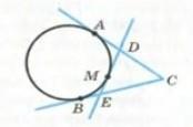 Пусть дано круг (О, R), CA, CB, DE - касательные, точки А, В, М соответственно являются точками соприкосновения.