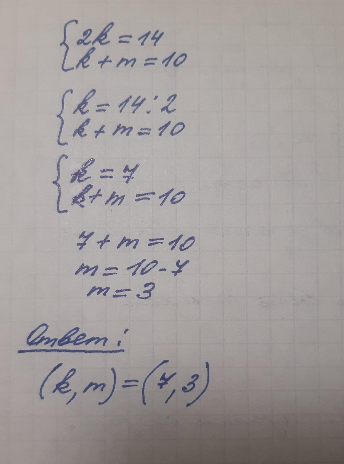 { k+ m=10