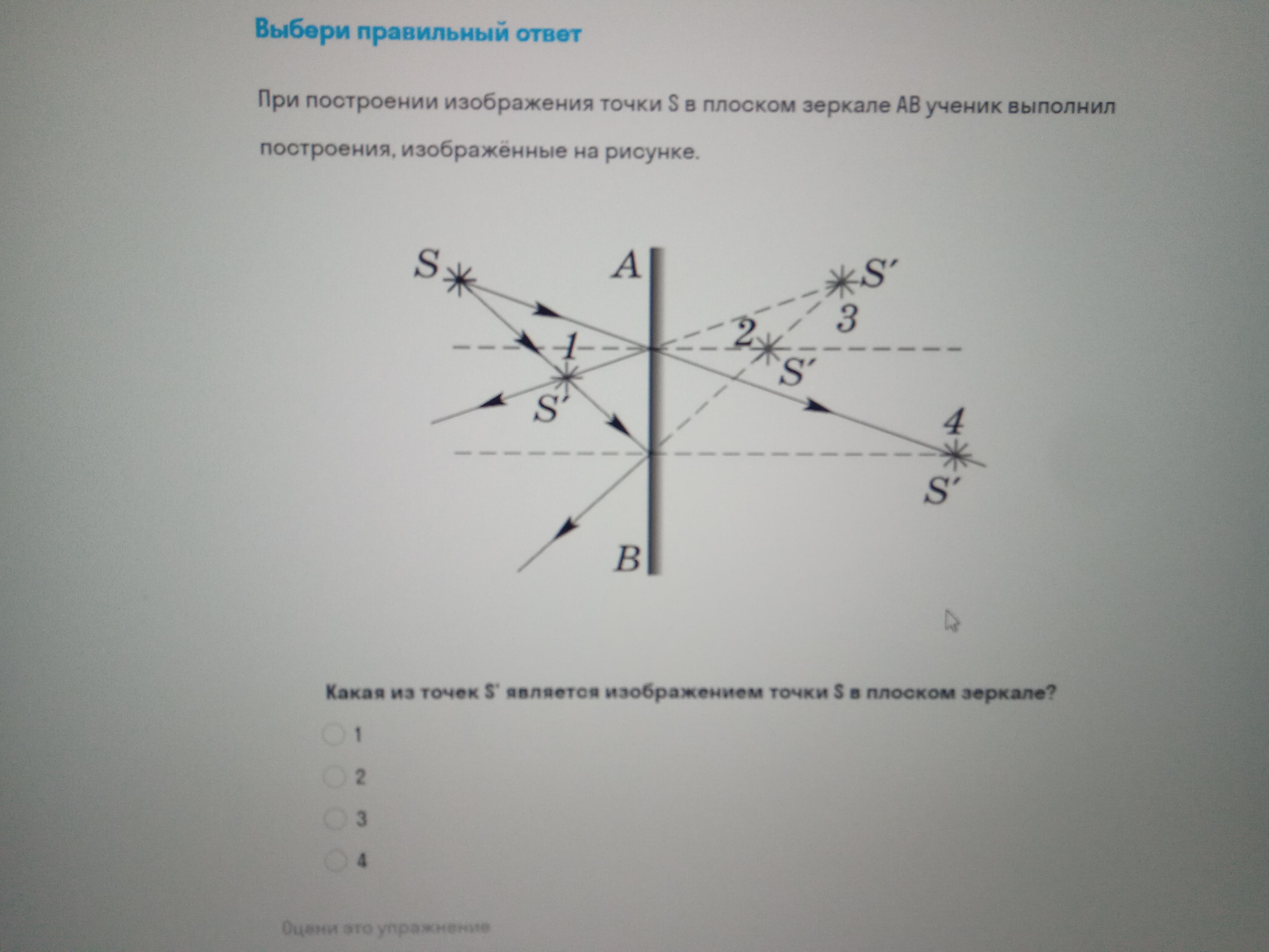 При построении изображения точки S в плоском зеркале АВ ученик выполнил построения, изображенные на рисунке.