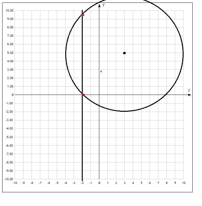 определите взаимное расположение прямой(х-3)²+(х-5)²=49 и х=-2
