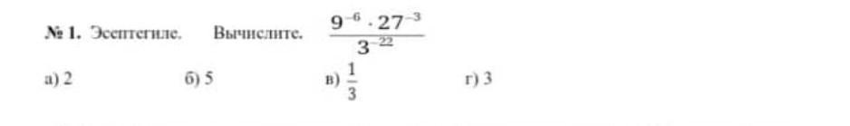 1 ) ( 9 ⁻⁶ * 27⁻³ )/ 3 ⁻²² = [ ( 3² )⁻⁶ * ( 3³ ) ⁻³ ] / 3 ⁻²² = ( 3⁻¹² * 3⁻⁹ ) / 3 ⁻²² =