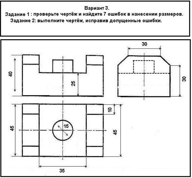 5) Размер 10 по ширине надо убрать, т.к. он не учитывает симметричность детали, а размер 25 по ширине уже нанесён на вид слева.