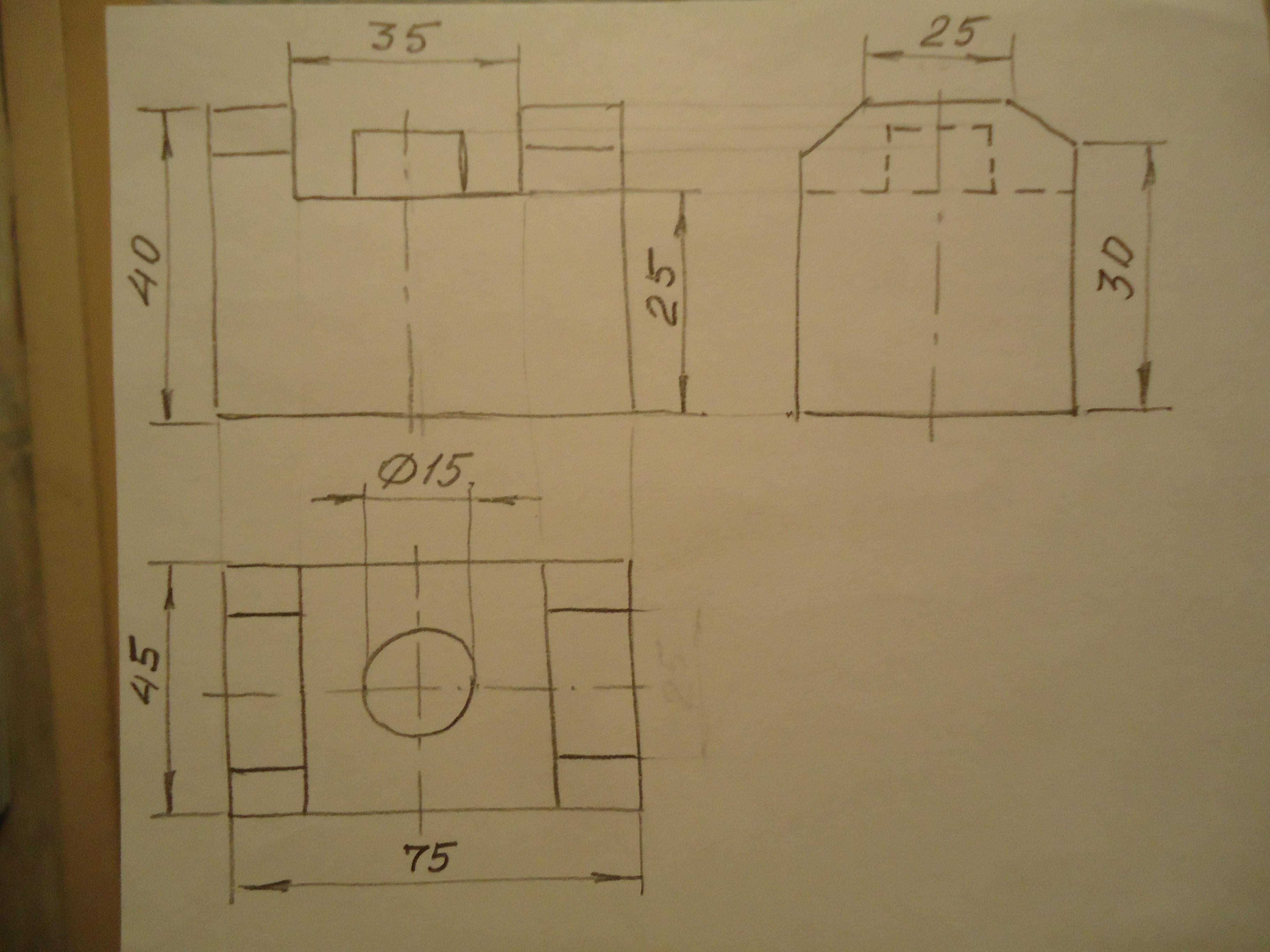 1) Размер 25 по высоте надо вынести за контуры чертежа.