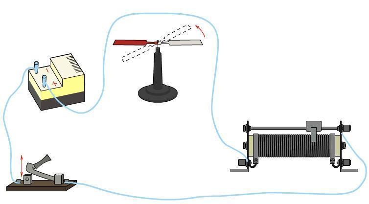 Для реализации данного опыта требуется к источнику тока через реостат подключить проводник, а возле него расположить магнитную стрелку компаса. Когда ток будет проходить по проводнику, будет наблюдаться отклонение магнитной стрелки. Данный опыт доказывает связь между электрическими и магнитными явлениями, когда электрический ток в проводнике станет оказывать влияние на магнитную стрелку компаса.