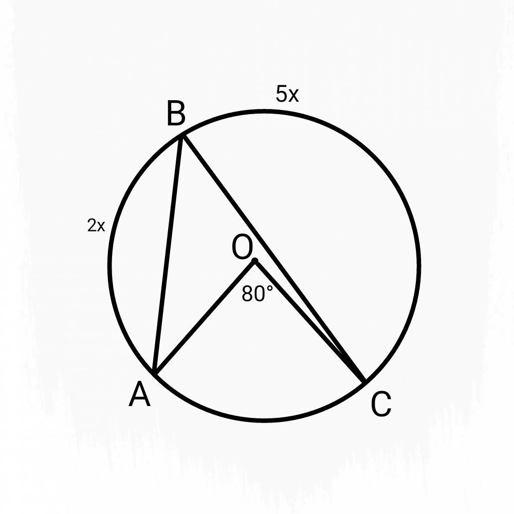 х = 40, => дуга АВ = 2*40 = 80, дуга ВС = 5*40 = 200
