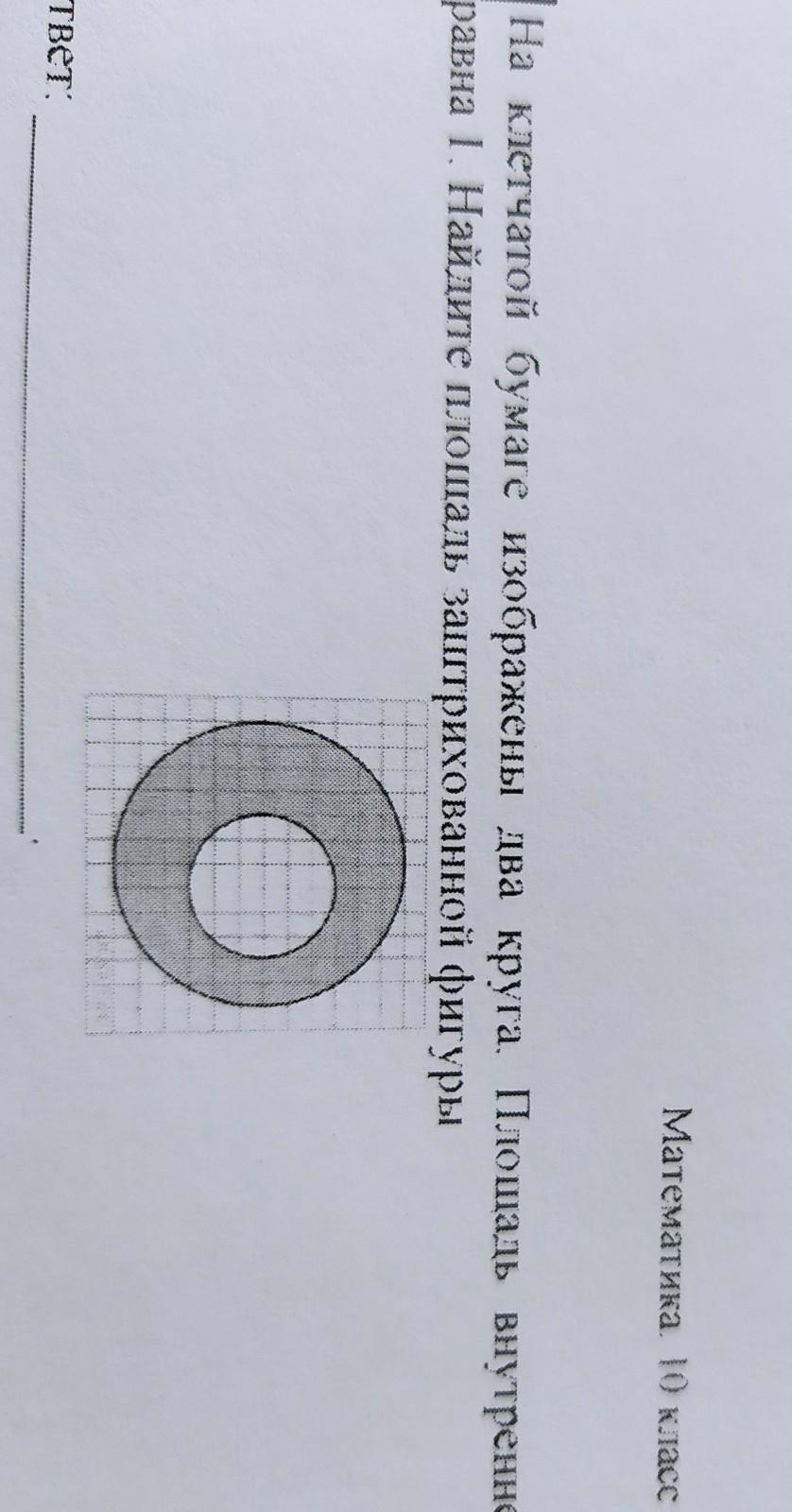 на клетчатой бумаге изображены два круга. площадь внутреннего круга равна 1. Найдите площадь заштрихованной фигуры