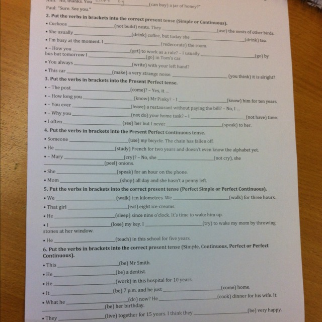Put the verbs in brackets into the correct present tense(Simple or Continios). Помогите пожалуйста с заданием по английскому.