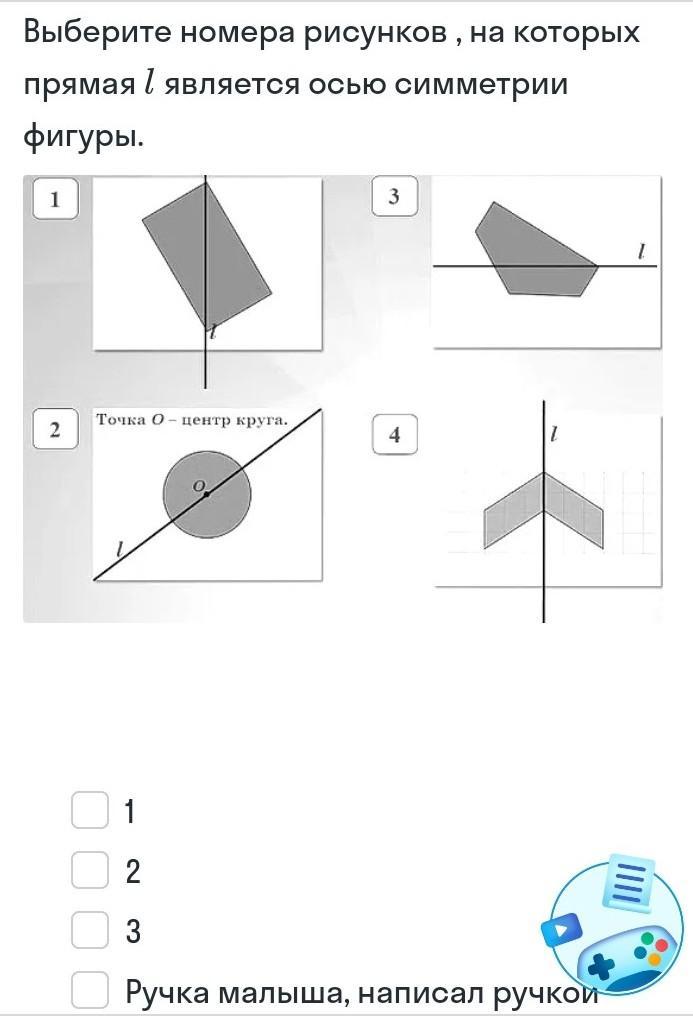 Линия, по которой можно перегнуть фигуру и получить одинаковые части, называется осью симметрии. В фигуре может быть одна ось симметрии, а может быть несколько. 2.