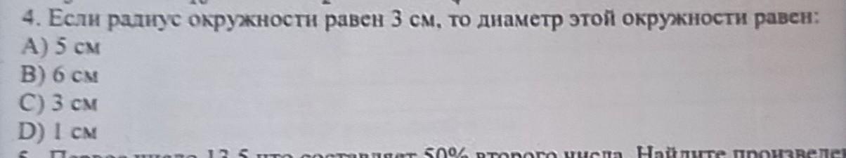 4. Если радиус окружности равен 3 см, то диаметр этой окружности равени