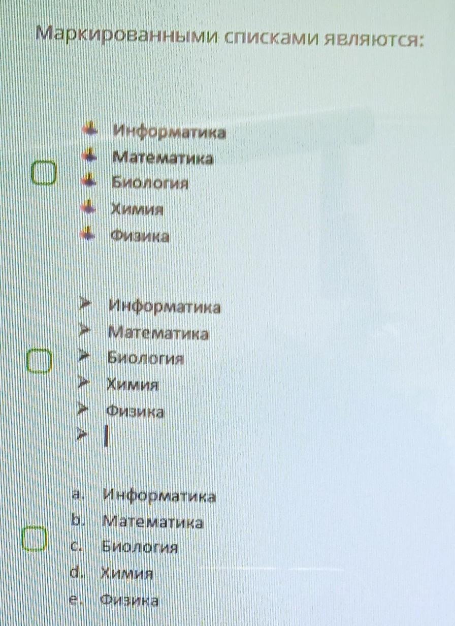 Все пункты маркированного списка имеют одинаковые маркеры.