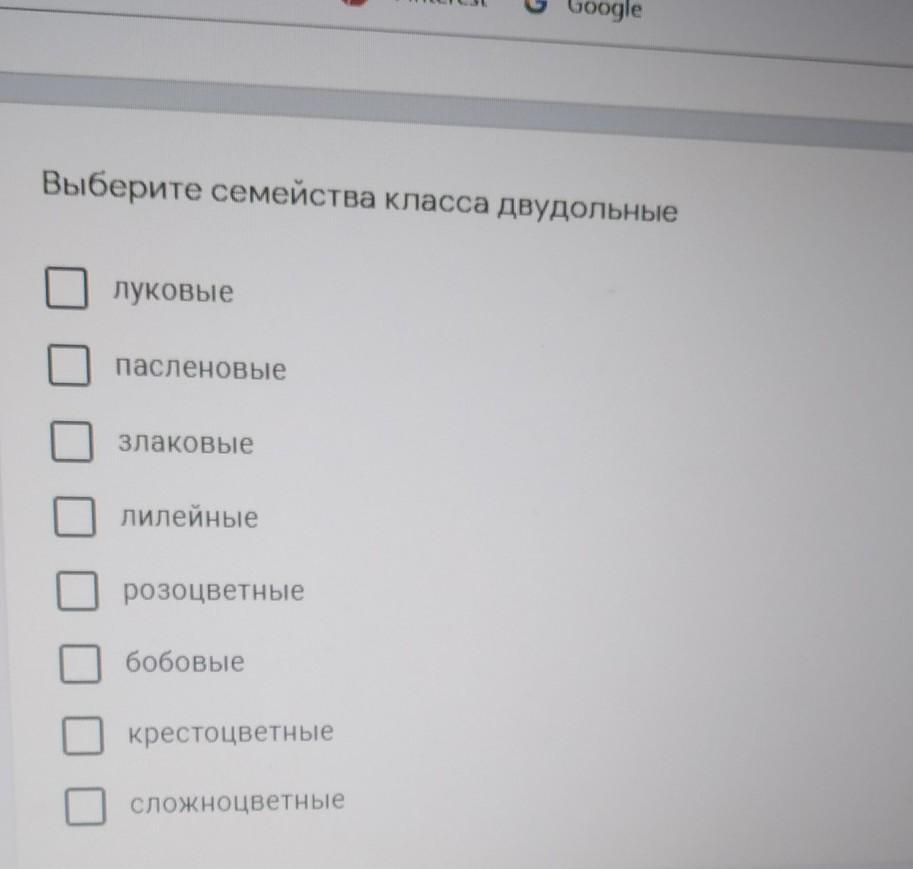 крестоцветные, розоцветные, бобовые, сложноцветные, паслёновые