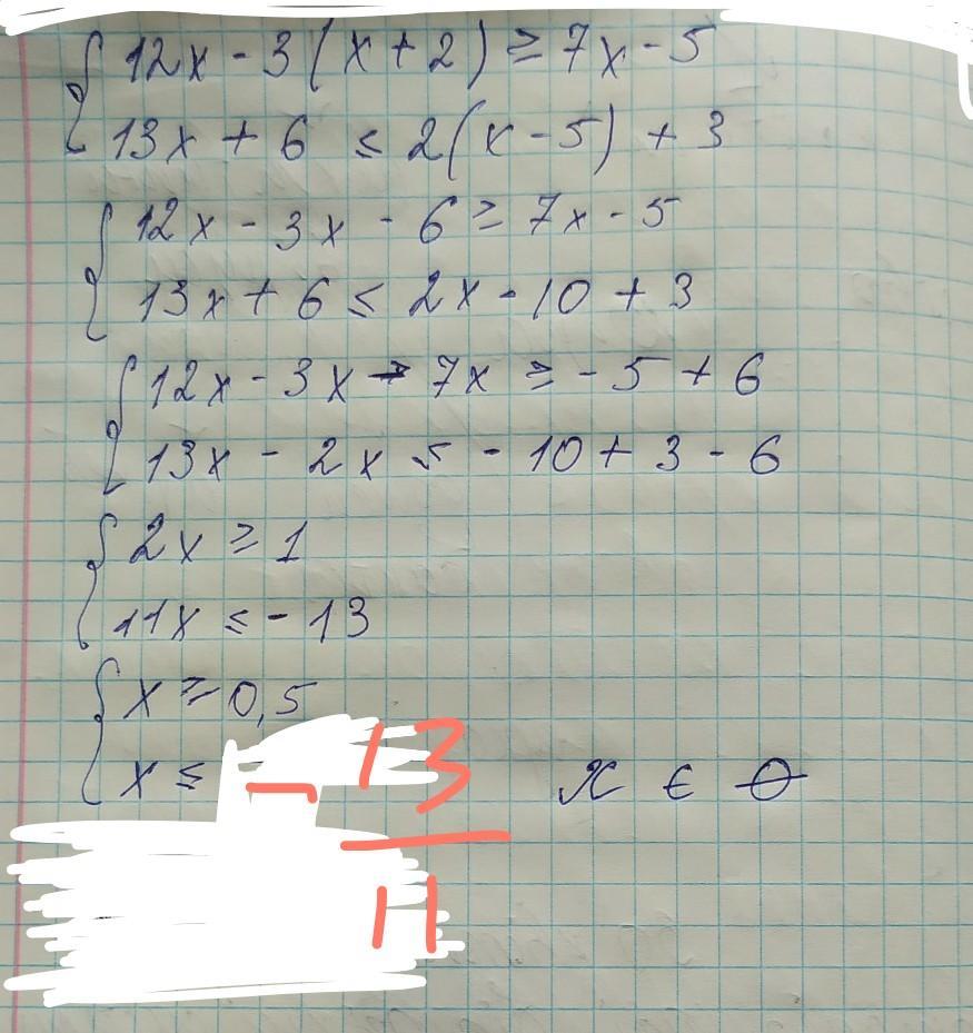 не могу уже полно ответить, ответ х есть (-бес.; -13/11]U[0,5;+бес)