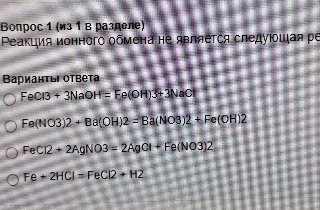 Fe + 2HCl =FeCl2+ H2↑ не является реакцией ионного обмена , это реакция замещения.