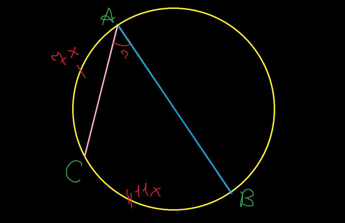 В окружности проведены диаметр AB и хорда AC. Найти угол BAC, если дуга AC относится к дуге CB, как 7:11