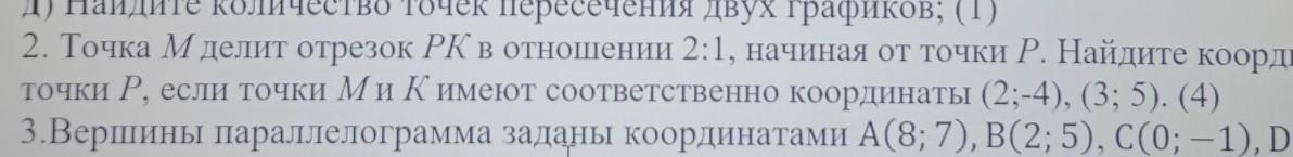 2. Точка М делит отрезок РК в отношении 2:1, начиная от точки Р. Найдите координаты