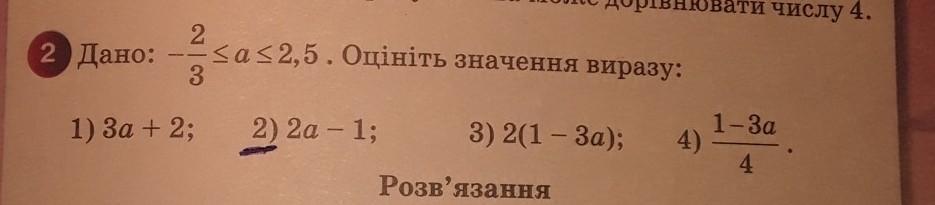 Дано -2/3≤а≤2,5 оцініть значення виразу 2а-1