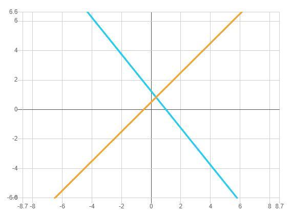 Точка пересечения этих двух прямых задает решение системы уравнений.