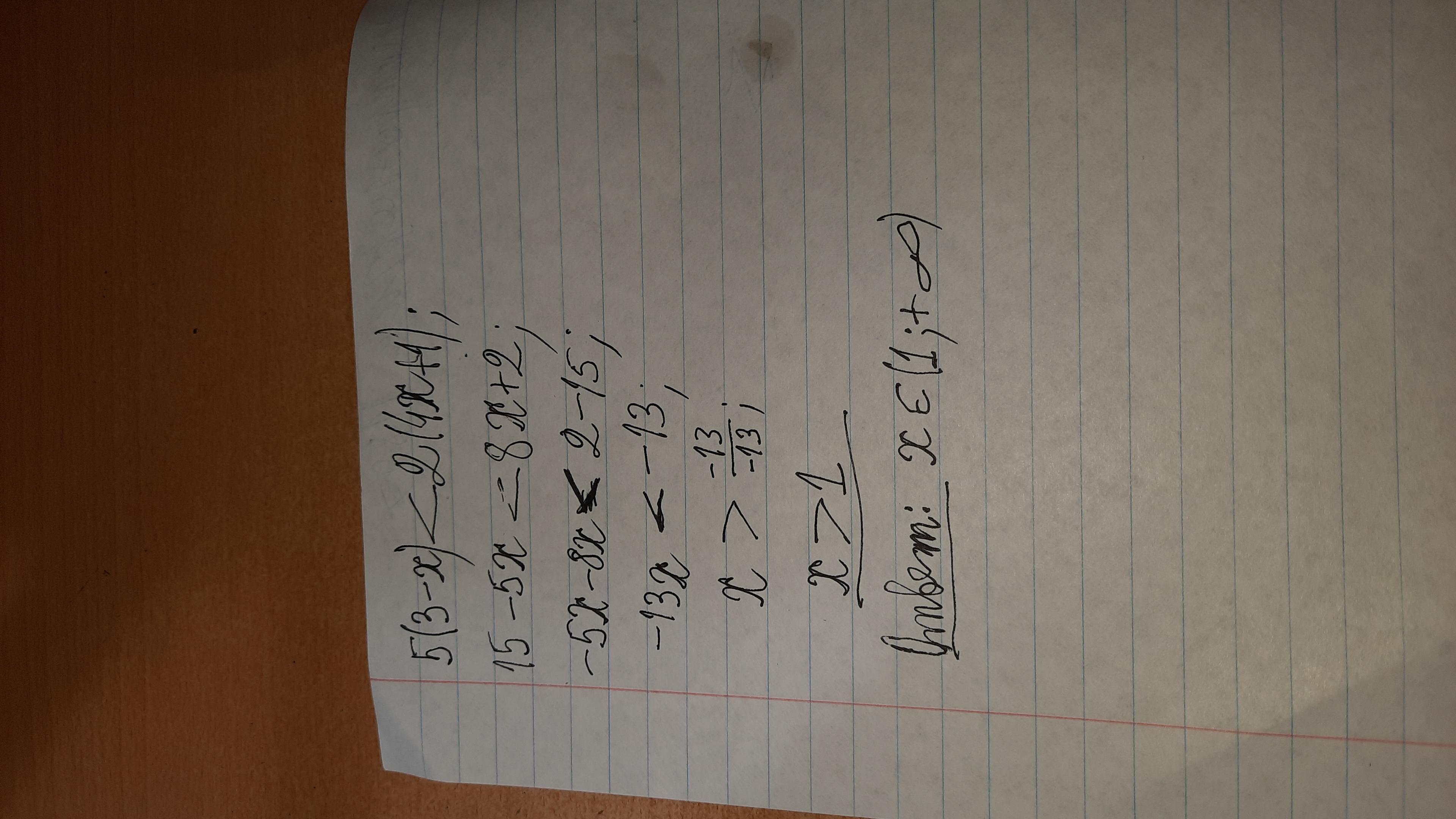 5(3 - x)<2(4х + 1)