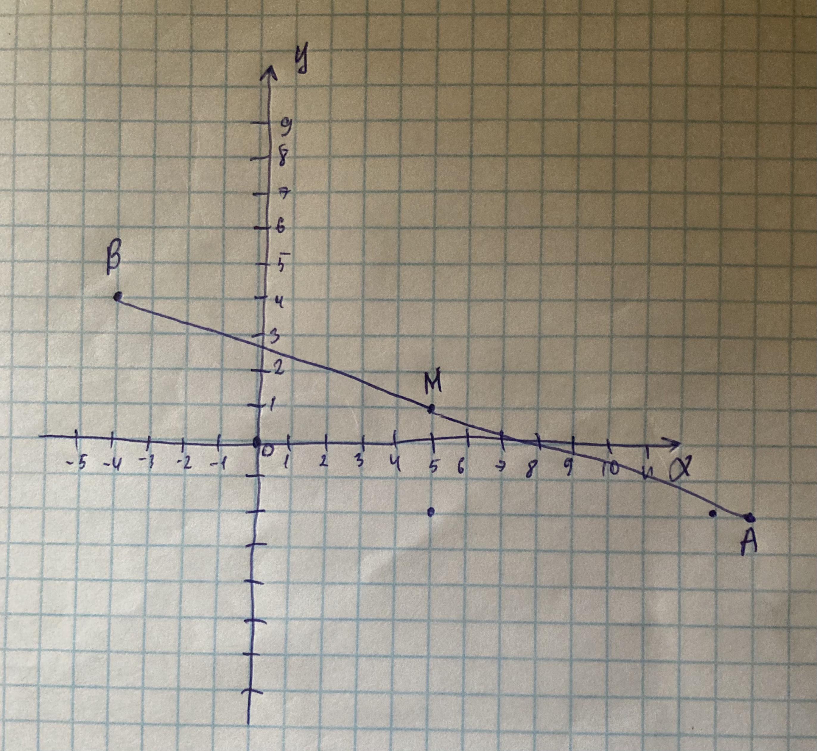 решим графически. между B и М разница 3 точки вниз и 9 точек вправо. так как это половина, отмеряем такое же расстояние и получаем А с координатами 14;-2.