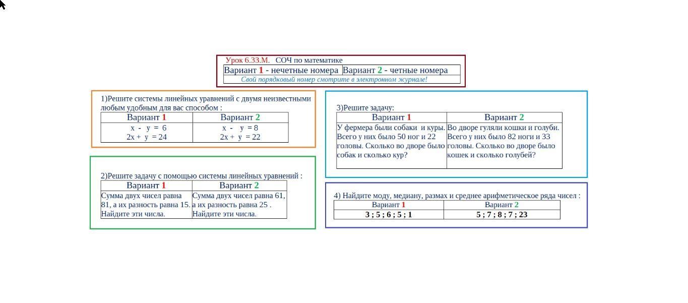 2x = 6 ; x = 3 , тоді у = 22 - х = 22 - 3 = 19 . В - дь : Собак - 3 , курей - 19 .