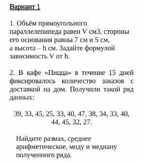 обьем прямоугольного параллепипеда равен v см3 стороны его равны 7 см и 5см а высотоa- h см задайте формулой V от h