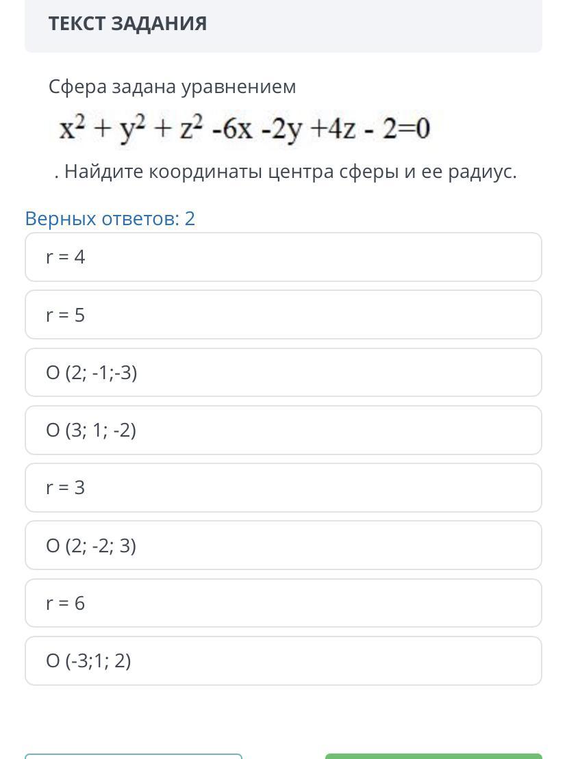 (x-3)^2+(y-1)^2+(z+2)^2=16