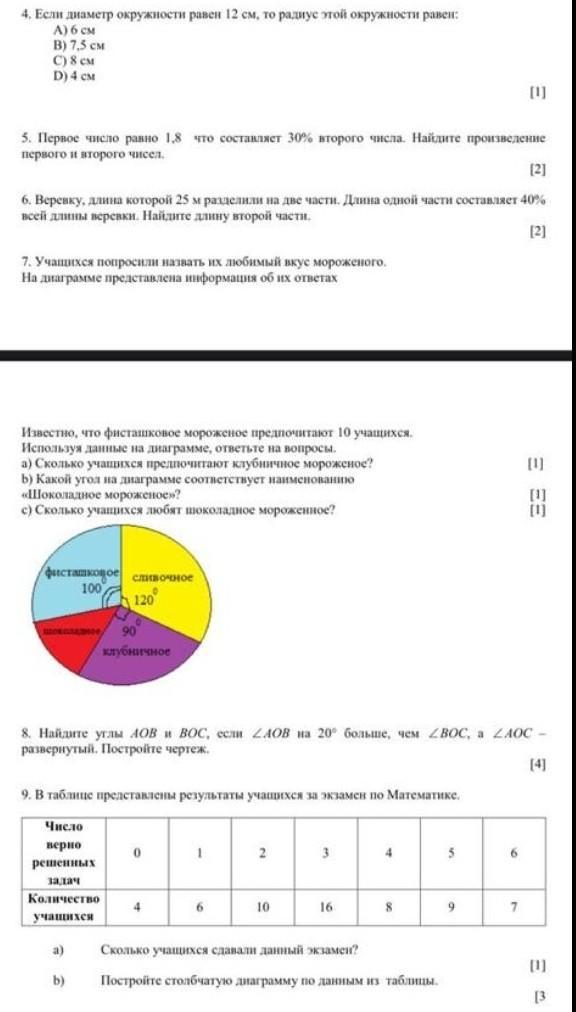 7) а) тк 100 градусов = 10 учеников, то 90 градусов = 9 учеников любят клубничное мороженное