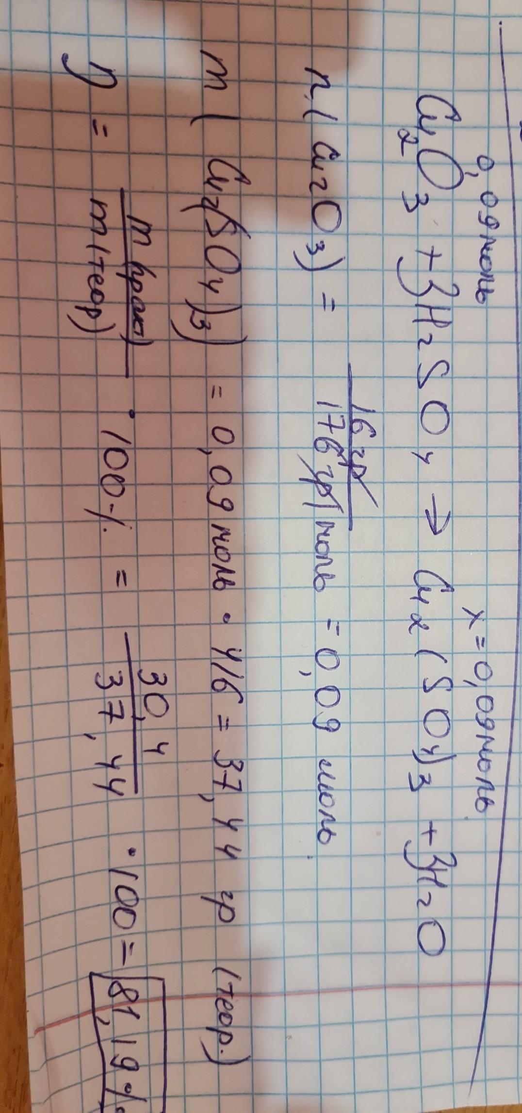 Купрум (|||) оксид масою 16г взаємодіє із сульфатною кислотою. Маса утвореної середньої солі становить 30,4г. Обчисліть і запишіть вихід (%) солі