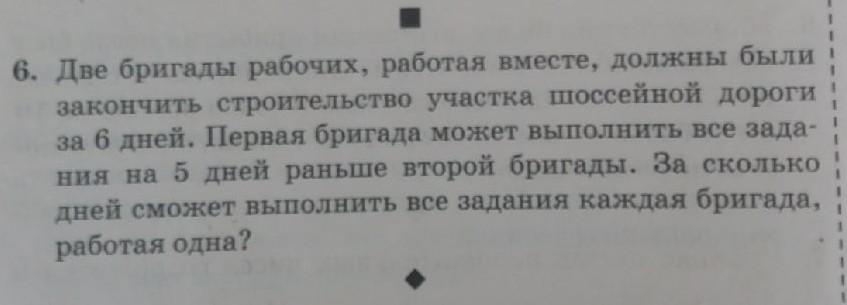 Первая брига может выполнить всю работу на 5 дней раньше , чем вторая . Пусть первая бригада может выполнить всю работу за х дней , а за 1 день она будет выполнять : часть работы .
