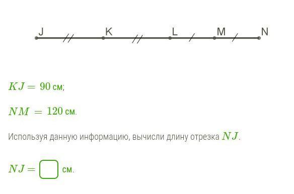 NJ = KJ × 2 + NM × 2 = 90 × 2 + 120 × 2 = 180 + 240 = 420 см