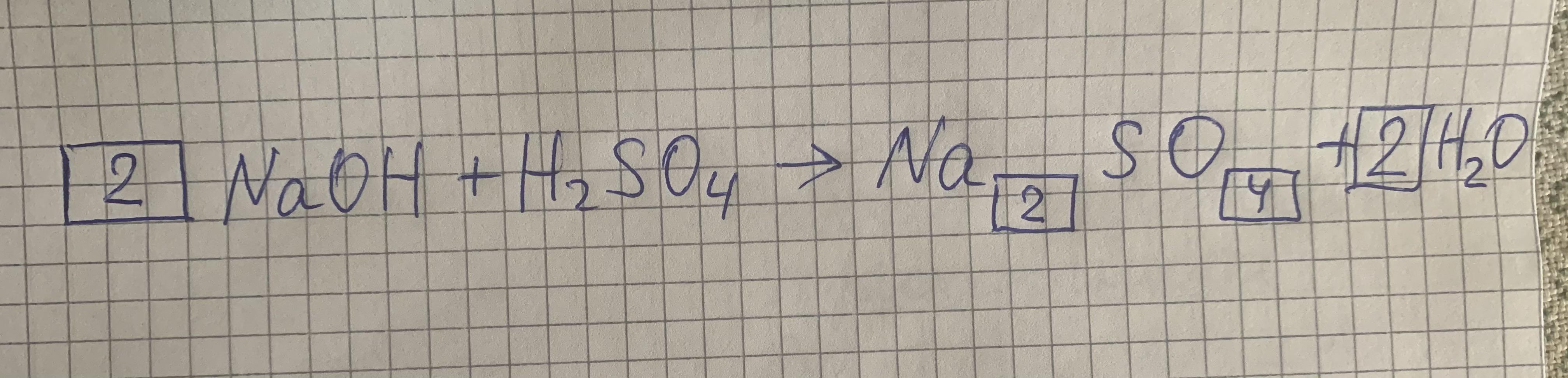 2NaOH + H2SO4= Na2SO4 + 2H2O