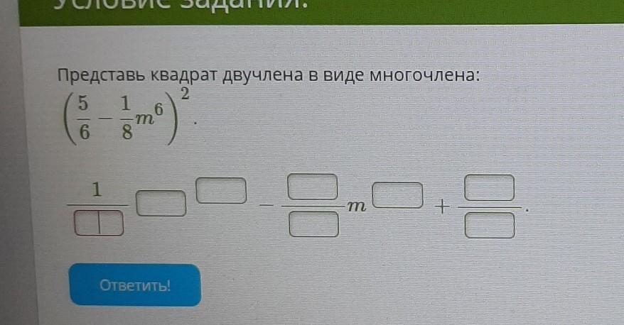 (5/6)^2-2*5/6*1/8m^6+(1/8m^6)^2= 1/64 m 12 - 5/24 m 6 + 25/36