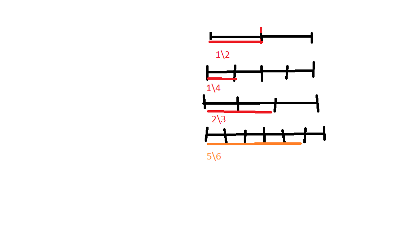 4 отрезок делишь на 6 одинаковых частей , ьерешь 5 частей - это 56