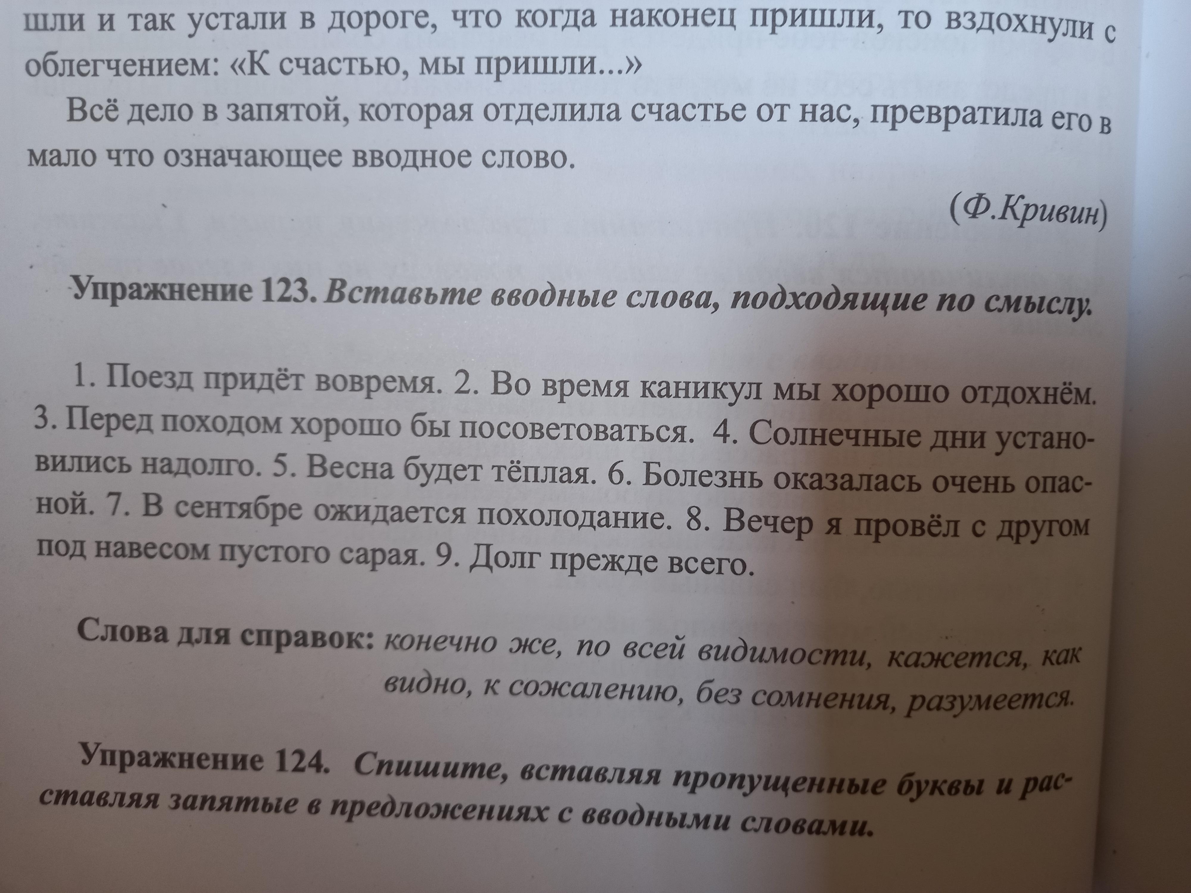 Конечно же, поезд придёт вовремя. Разумеется, во время каникул мы хорошо отдохнём. По всей видимрсти, солнечные лучи установились на долго. Без сомнения, перед походом хорошо бы посоветоваться. По всей видимости, весна будет тёплая. К сожалению, болезнь оказалась очень опасной. Кажется, в сентябре ожидается похолодание. Конечно же, вечер я провел с другом под навесом пустого сарая. Как видно, долг прежде всего.