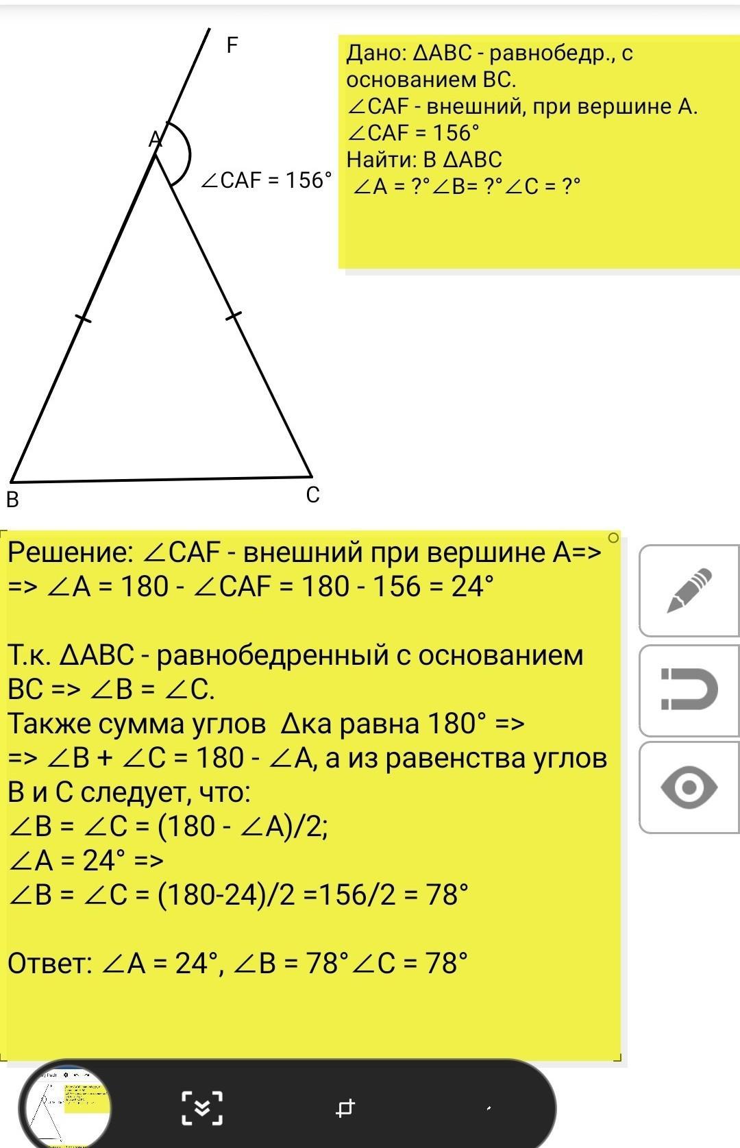 Ответ: ∠А = 24°, ∠В = 78°∠С = 78°