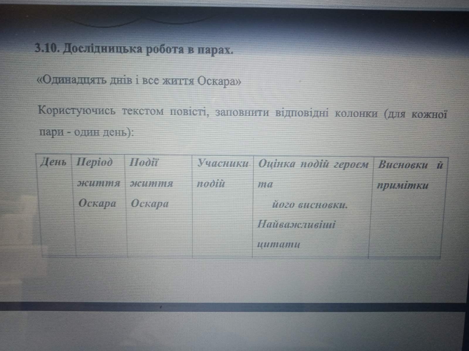 Користуючись текстом повісті, заповнити відповідні колонки (для кожної