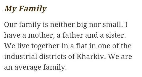 Эссе на темы: 1) My family, 2) Aboute myself, 3) My friends, 4) My university, 5) My futute profession, 6) Favourite festival/ holiday, 7) Last summer holiday, 8) My room, 9) Last time you had a delicious meal, 10) My favourite items of clothing на английском с переводом. На все темы