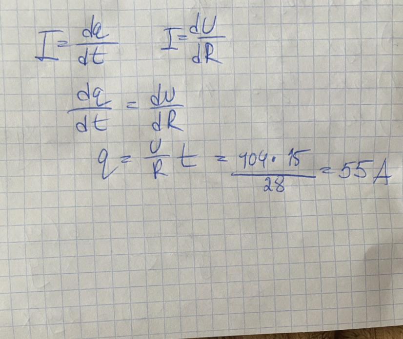 Определить какой заряд протекает по проводнику сопротивлением 28 Ом за 15 секунд, если напряжение составляет 104 В.
