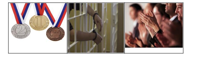 1 и 3 — как поощрение за труд, мы можем получить материальное вознаграждение - медаль; можем получить похвалу со стороны учителя/тренера/общества (например, аплодисменты).