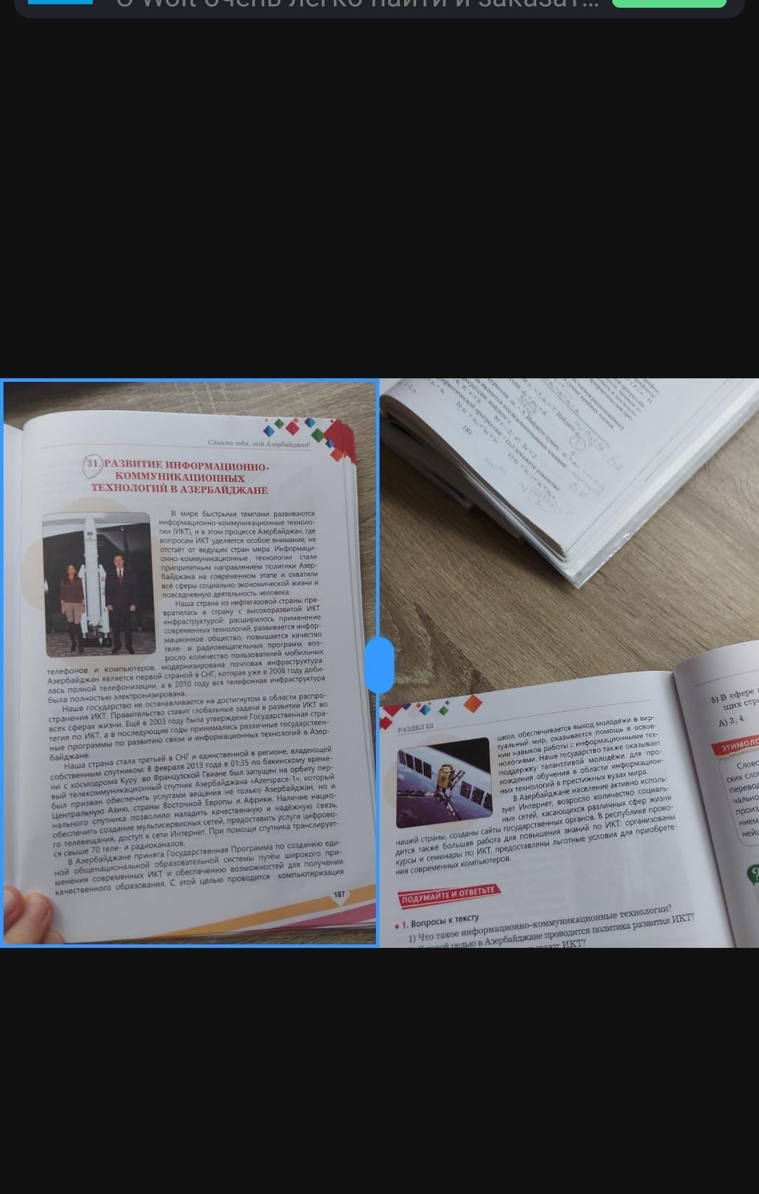 2)В Азербайджане принята Государственная Программа по созданию единой общенациональной образовательной системы путём широкого применения современных ИКТ и обеспечению возможностей для получения качественного образования. С этой целью проводится компьютеризация школ, обеспечивается выход молодёжи в виртуальный мир, оказывается помощь в освоении навыков работы с информационными технологиями. Наше государство также оказывает поддержку талантливой молодёжи для прохождения обучения в области информационных технологий в престижных вузах мира.