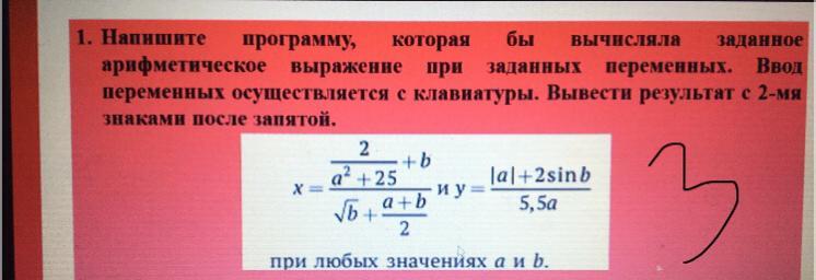 y = (abs(a)+2 * math.sin(b))/(5.5*a)