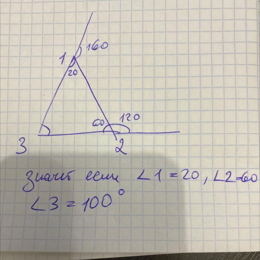 два внешних угла треугольника равны 120° и 160°.найдите внутренние углы треугольника.прошу помощи.