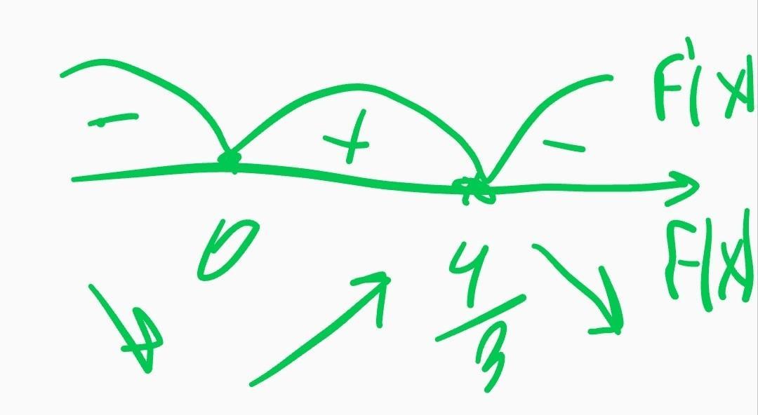 Из этого следует что точка минимума 0, а точка максимума 4/3