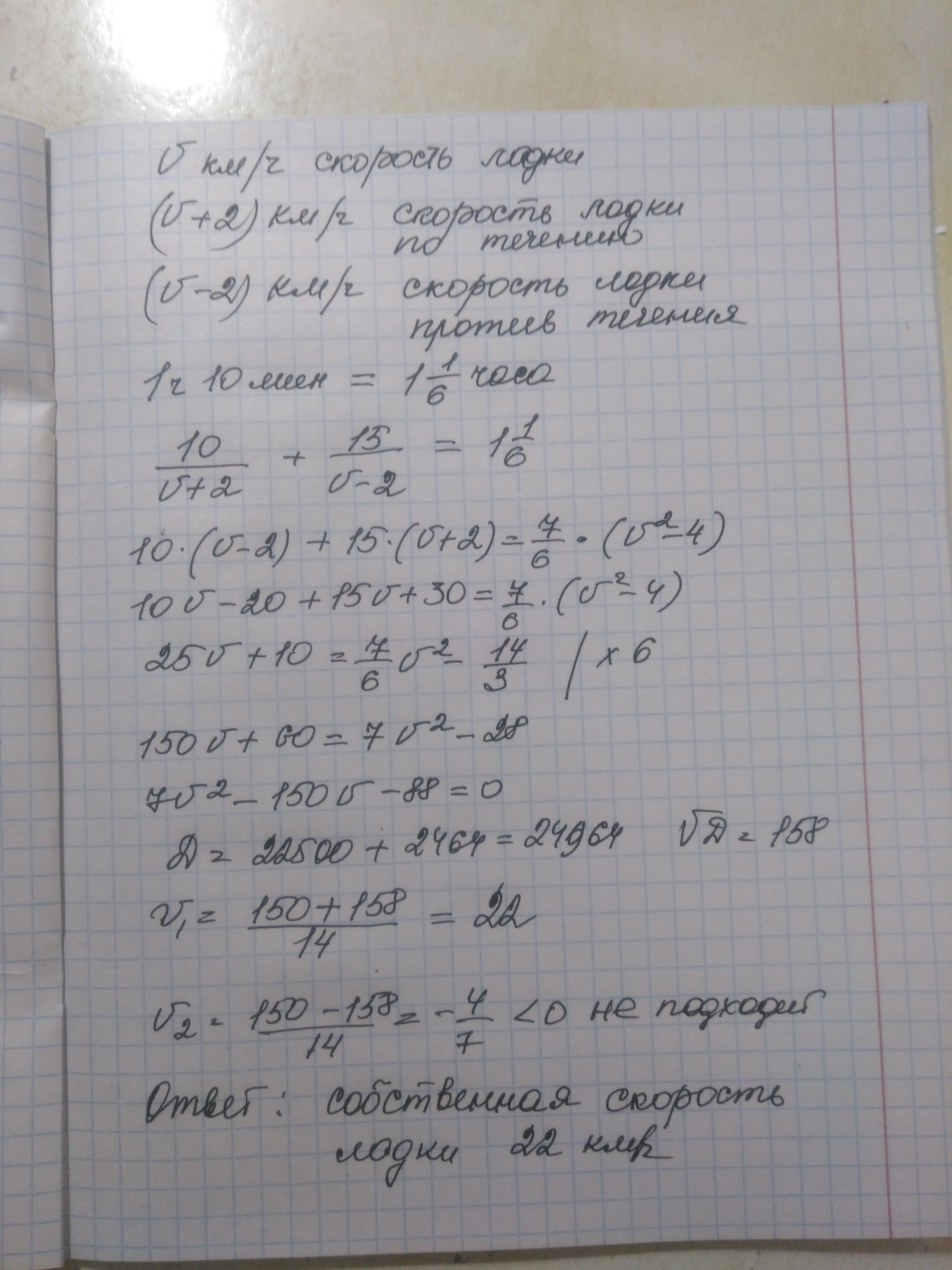 моторная лодка прошла по течению реки 10 км, а против течения 15 км, затратив на весь путь 1ч 10мин.Найдите скорость лодки по течению, если скорость течения реки равна 2 км/ч